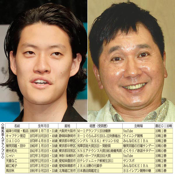 誰が一番? 競馬芸人の予想的中レース 直近GI10戦データ付き