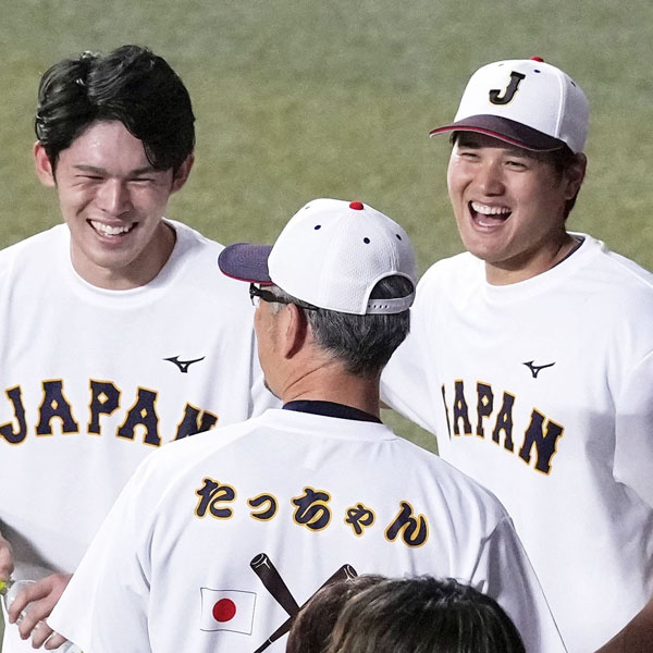 大谷翔平(右)と佐々木朗希(C)共同通信社