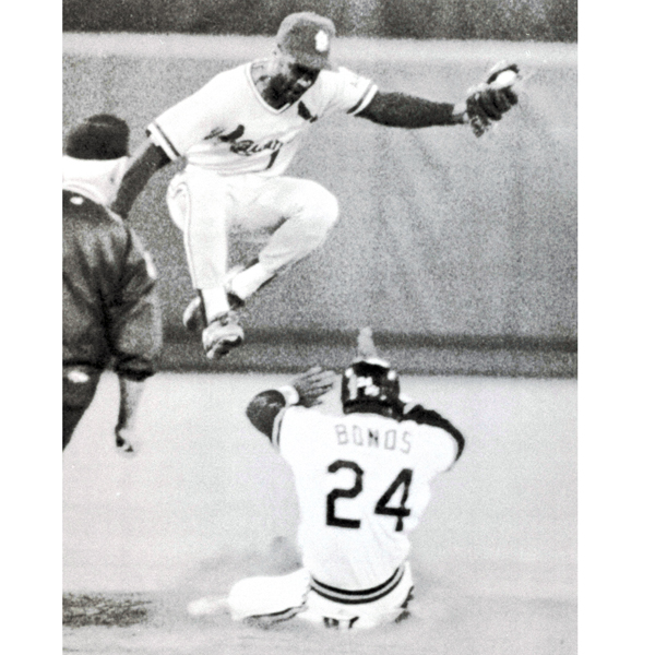 カージナルスのオジー・スミス遊撃手(手前は二塁に滑り込むバリー・ボンズ)/(C)ロイター