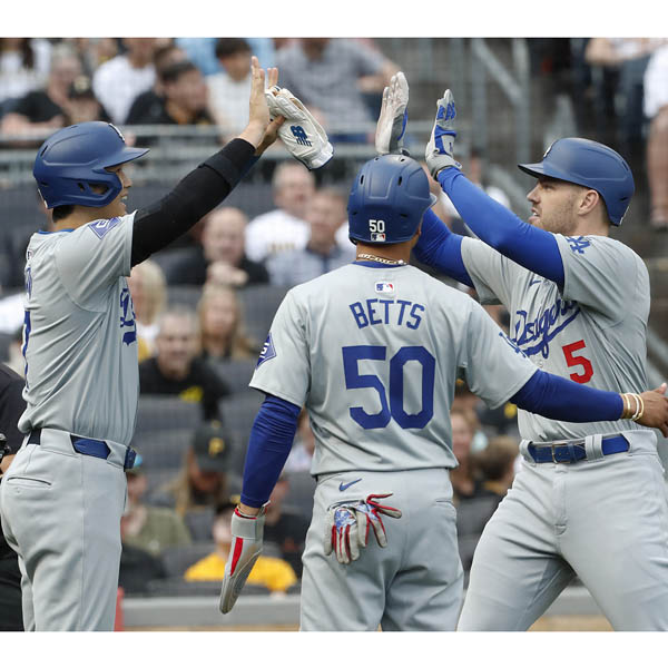 (左から)大谷、ベッツ、フリードマンのMVPトリオ(C)ロイター/USA Today Sports
