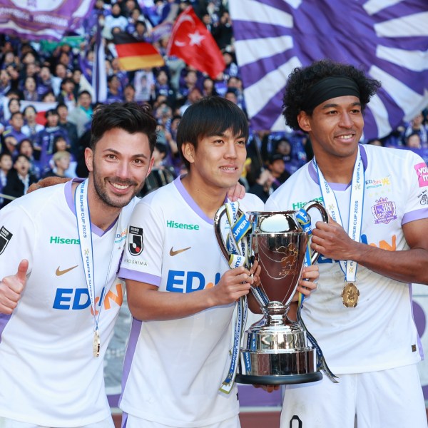 スーパー杯を制した広島の主力陣(左からMFアルスラン、MF田中、FWジャーメイン)(C)Norio ROKUKAWA/office La Strada