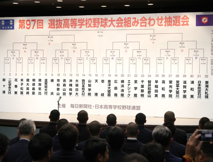 対戦カードが決まった「第97回選抜高校野球大会」の組み合わせ抽選会(C)日刊ゲンダイ