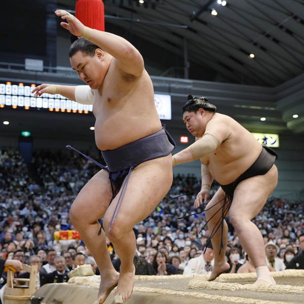 豊昇龍(左)、阿炎に敗れる(C)共同通信社
