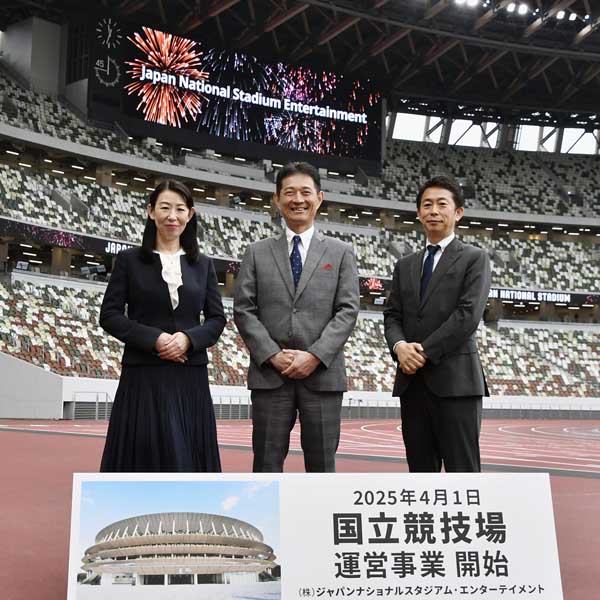 国立競技場の民営化事業開始(竹内晃治社長=中央)/(C)共同通信社