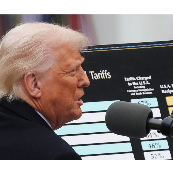 各国・地域に対する関税引き上げを発表したトランプ米大統領(C)ロイター