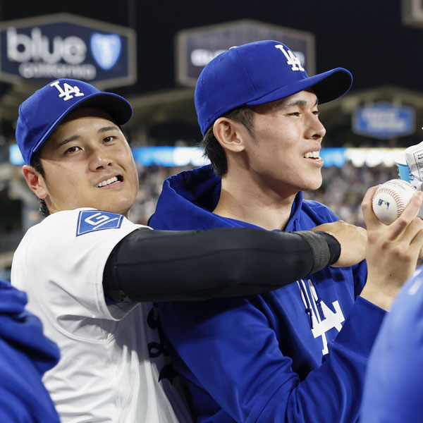 佐々木朗希を気遣う大谷翔平(C)共同通信社