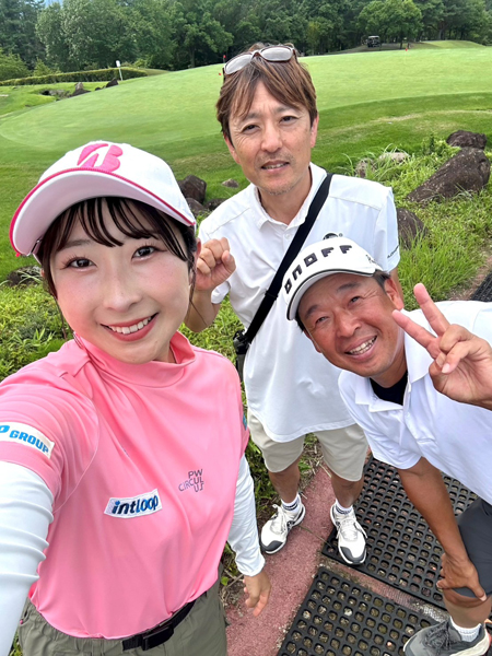 練習ラウンドにはボクもお供しました(中央は父・達也さん=提供写真)