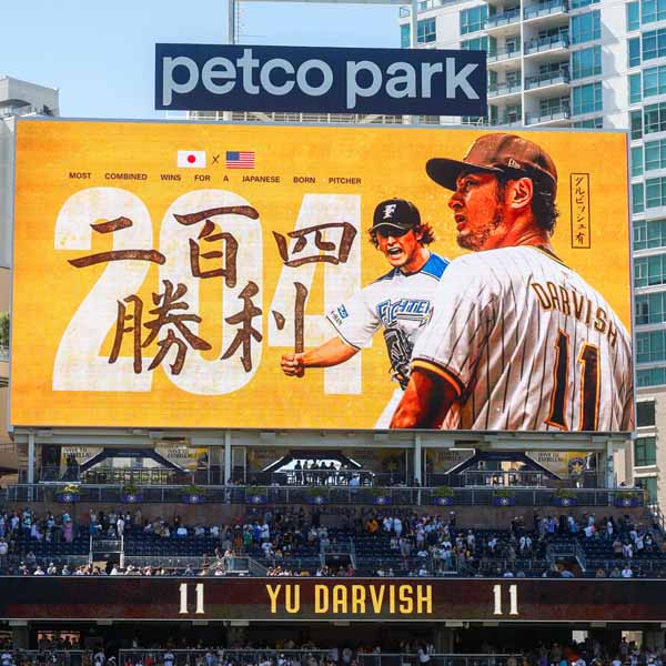 本拠地ペトコ・パークに「日米通算204勝利」のお祝い看板も(C)ロイター/Imagn Images