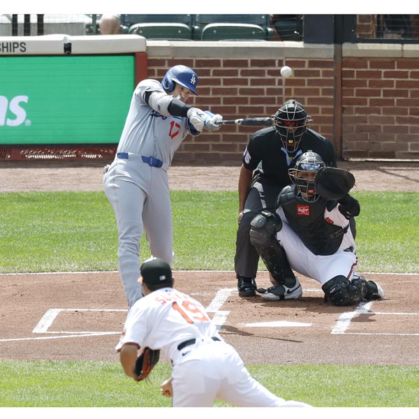 オリオールズ・菅野智之から47号ソロを放つドジャース・大谷翔平(C)共同通信社