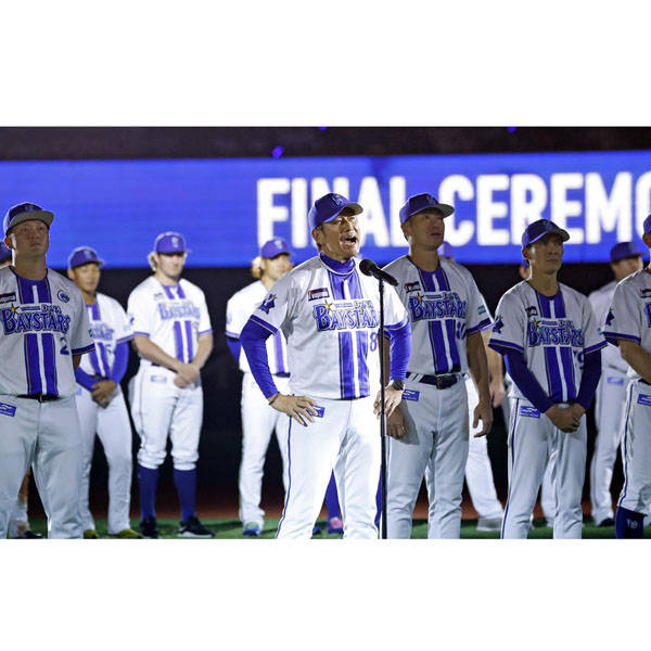 DeNA・三浦監督とナイン(C)共同通信社
