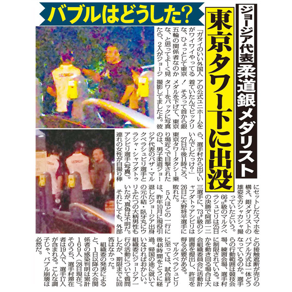 「ジョージア代表柔道銀メダリスト東京タワーに出没」(2021年7月30日付け紙面)/(C)日刊ゲンダイ