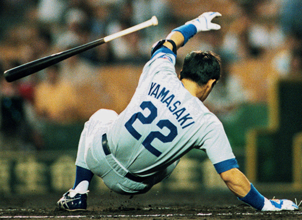 「ヤブ」から棒に死球を受けた筆者(C)共同通信社