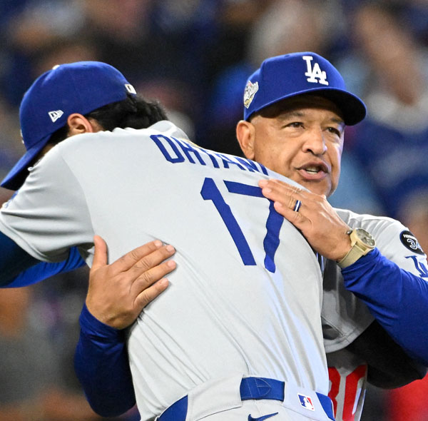 大谷翔平とロバーツ監督(C)ロイター/Imagn Images