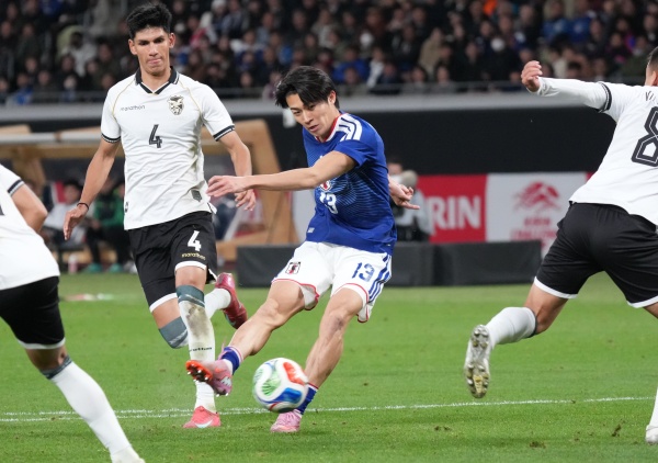中村敬斗がボリビア戦で決めたゴールのシュート場面(C)Norio ROKUKAWA/office La Strada