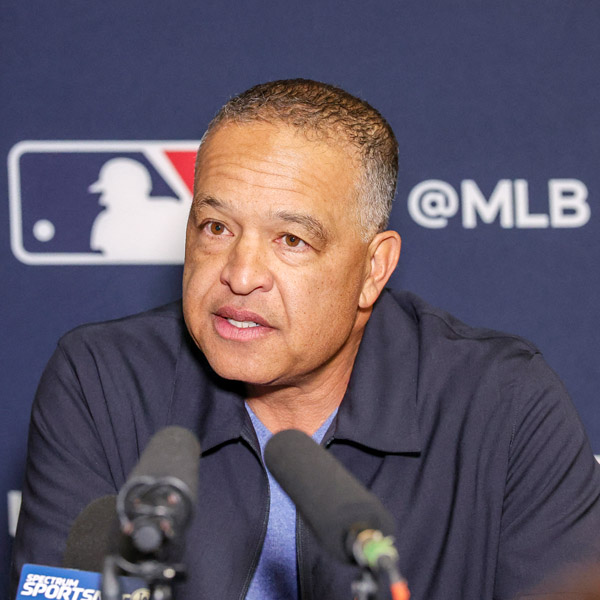 2025ウィンターミーティングで会見するドジャースのロバーツ監督(C)ロイター/Imagn Images