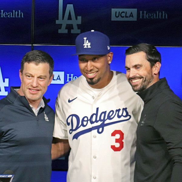 約266億円のぜいたく税を払うドジャースは今オフ、さらに総額約108億円でエドウィン・ディアス(中央)を獲得(C)共同通信社