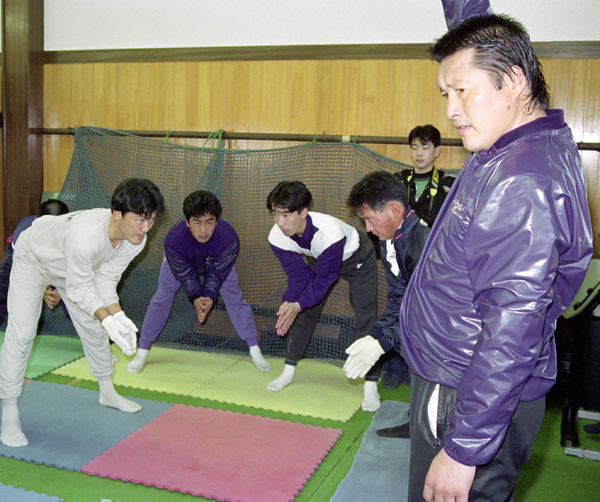 雨の日は2階にあるトレーニング室で(1992年)/(C)共同通信社