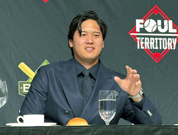 大谷翔平、全米野球記者協会ニューヨーク支部主催の夕食会で(C)共同通信社
