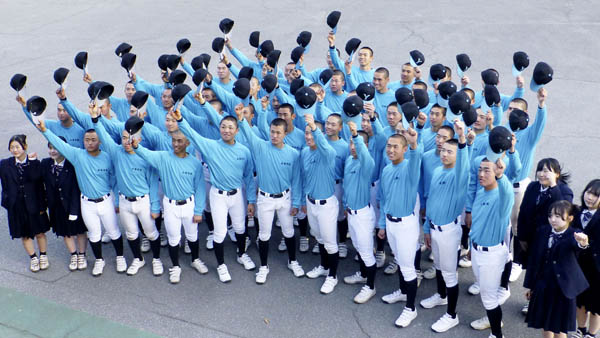 5年連続センバツ出場が決まり、喜ぶ山梨学院ナイン(C)共同通信社