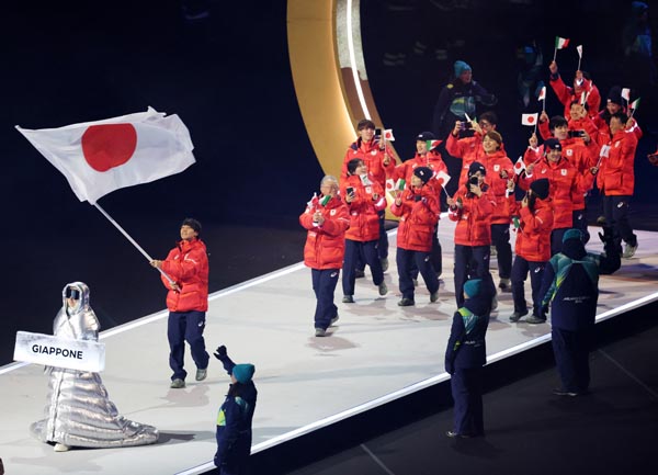 開会式で旗手の森重航を先頭に入場行進する日本選手団(C)ロイター