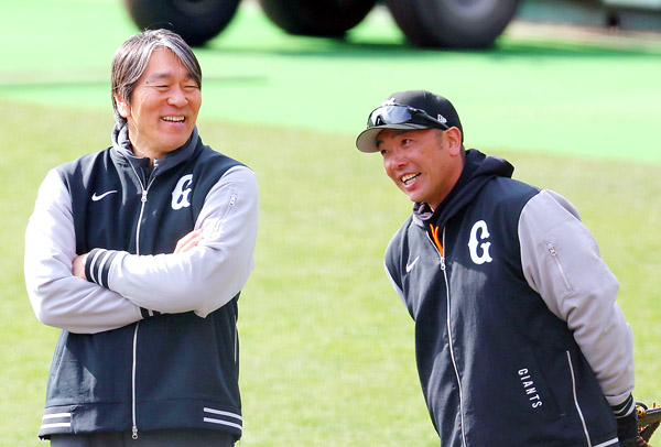 松井秀喜臨時コーチと阿部監督(C)日刊ゲンダイ