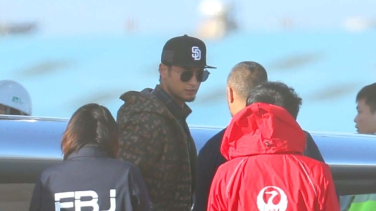 チャーター機で宮崎入りしたダルビッシュ(C)日刊ゲンダイ