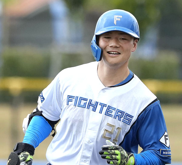 楽天との練習試合で本塁打を放ち、笑顔で塁を回る清宮幸太郎(C)共同通信社