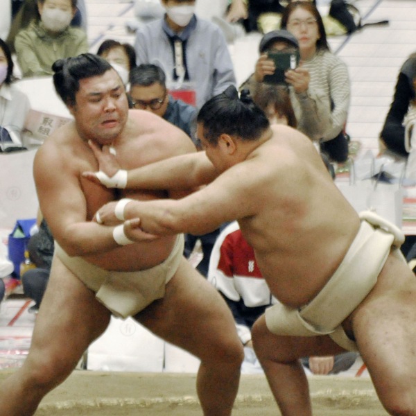 豊昇龍(右)と稽古を行う霧島(C)共同通信社