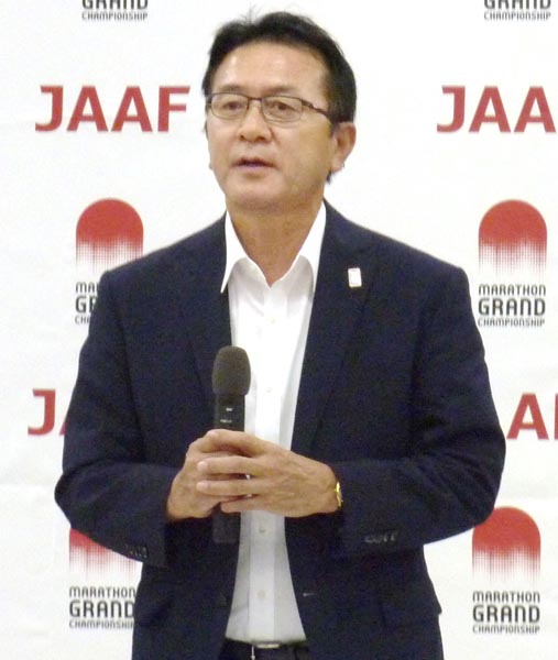 謝罪した日本陸連の瀬古リーダー(C)共同通信社
