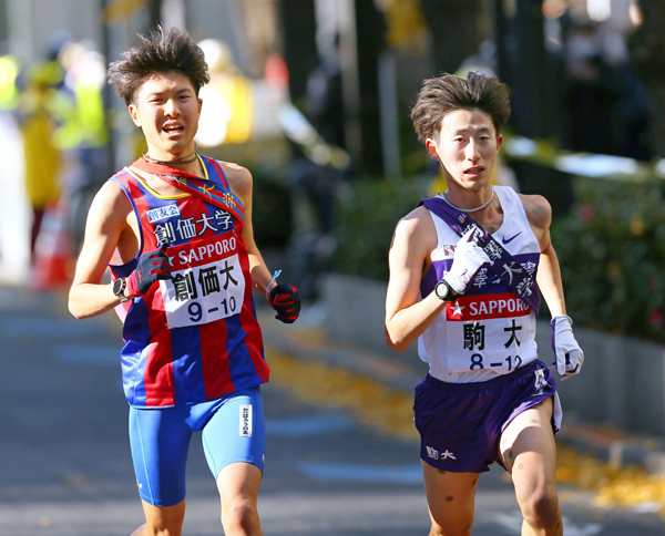 石川容疑者(右)は創価大の選手を抜き去りヒーローになったが…(代表撮影)
