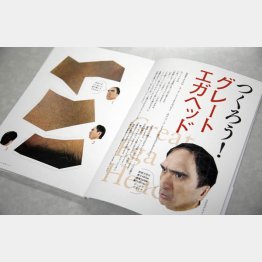目玉は、「グレートエガヘッド」。ポリゴン(多角形)に分割された頭部の3Dモデル作成と絵柄合わせ(テクスチャー・マッピング)。さらにそこから「展開図」作成と、本書制作スタッフの苦労が忍ばれる。