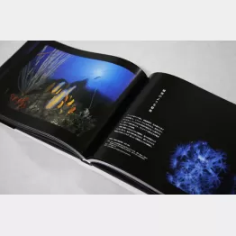一方、メーンの生物写真は、背景をすべて省略、黒バックとし、生物の色と形のみを浮かび上がらせる。「……ありのままの生物のすごさを見てもらいたいと思ったのです」とは著者の弁。水槽撮影や切り抜き画像ではない。章扉と同様、本物の海中で撮影されているため、諸条件により背景の「黒」の色合いが異なる。補正なしのままチリやゴミが写り込んでいるせいで、海の深度や奥行きがリアルに感じられる。