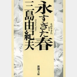 その出来栄えは映画を見てもらうとして、性革命以前の時代の「通俗小説」の代表格が三島由紀夫著「永すぎた春」(新潮社 520円)である。いみじくも「もはや戦後ではない」と経済白書がうたった昭和31年に「婦人倶楽部」に連載されてベストセラーになった有名な作品だが、戦前なら「身分違い」とされただろう恋愛が婚約にこぎつけながら、「接吻以上は禁欲」という制約つきで長々と引き延ばされる悲喜劇。中盤から作者の悪癖によるひねり過ぎで上滑りになってしまうものの、前段は「初夜」とよく似ている。時代が違えばこうも違うという見本のようだ。 <生井英考>