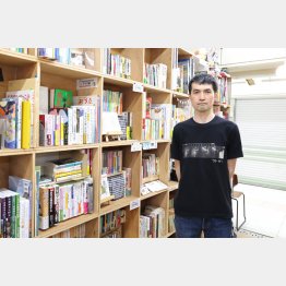 隣にスーパーや100均ショップ。生活感のある地下通路に面していて、立ち止まる人が次から次。近年、シェア本棚がはやっているが、その元祖が、ここ「書肆七味」の店主。すごい人だと聞いてきたが、あら。
