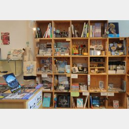 「週刊つりニュース」のオフィスビルの1階。昭和期を中心とした各種釣り竿や魚籠を展示し、無料公開する「釣り文化資料館」があり、その入り口が「魚」に特化した本が並ぶ、4坪ほどの本屋さんとなっている。
