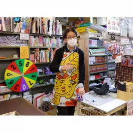 従前より少し狭くなって24坪に。新装にあたって、「楽しい店」にしようと屋号をひらがなに変えた。「かえるの本屋さん」の愛称は、「江戸時代に大火事になったとき、大蛙が火を止めたという麻布の伝説から」だそう。小さな神社(もどき)までつくっちゃったとは、面白すぎ! 外まで聞こえた子どもたちの声は、レジ近くのルーレットダーツ前からだった。200円で遊べ、相応のおもちゃがもらえるのだ。
