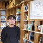 よもぎBOOKS(三鷹)黄色の壁に並ぶ絵本、平台の選書やアートに思わず見入る