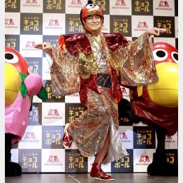 7日、「大人に贅沢チョコボール」発売記念イベントに出席した松平健(60)。イメージキャラクターであるキョロちゃん風の衣装で登場すると「いきなりですが、今日は『松平健』ではなく『マツケン』でもなく、『キョロケン』と呼んで下さい」と宣言。トークショーでも「大人のキョロちゃんクエー」などと語尾に「クエー」を付ける徹底ぶり。「クエッ クエッ クエッ チョコボール~」の歌と「マツケンサンバ」のコラボ曲「クエクエサンバ」を初披露した。