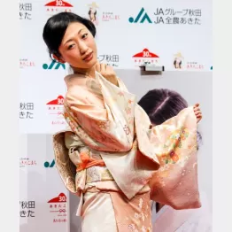 8日、「秋田県産『あきたこまち』デビュー30周年」新CM発表会が開かれ、昨年「名誉あきたこまち大使」に就任した秋田県出身の壇蜜が着物姿で登場した。
