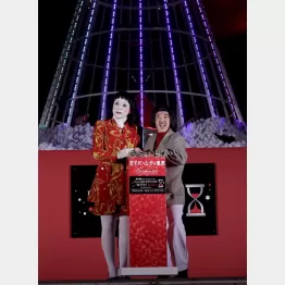 お笑いコンビ「日本エレキテル連合」が30日、ダイバーシティ東京プラザのクリスマスイルミネーション点灯式に出席。MCが「見に来なきゃ?」と呼びかけると、「おしゃべりワイフシリーズ 未亡人朱美ちゃん3号」こと橋本小雪(29)が観客1100人と共に「ダメよ~ダメダメ」と言うと、イルミネーションが点灯。その後も、「ダメよ~ダメダメ」と連発すると、「小平市の細貝さん」こと中野聡子(30)は「そればっかり。飽きた。他に何か言え!」とツッコむも、橋本は「ダメよ~」を言い続けていた。
