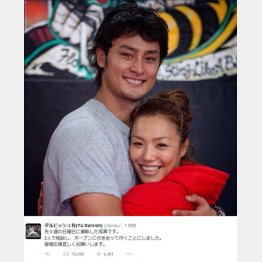レンジャーズのダルビッシュ有(28)が18日、自身のツイッターで女子レスリング元世界王者の山本聖子(34)との交際を宣言。「先々週の日曜日に撮影した写真です。2人で相談し、オープンに付き合って行くことにしました」と明かし、ご覧のようなツーショット(写真はツイッターから)を投稿した。