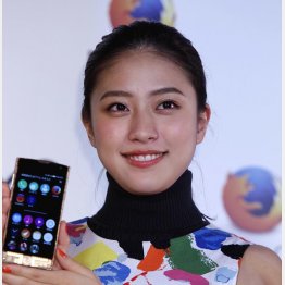 23日、KDDIの新携帯端末発表会見に登場した女優の池澤あやか(23)。国内通信事業者初の「Firefox OS」搭載スマートフォンが発売されるとあって、慶大環境情報学部卒(トリンドル玲奈と同級生)でプログラミングができる女優として知られる池澤がMC役を務めた。
