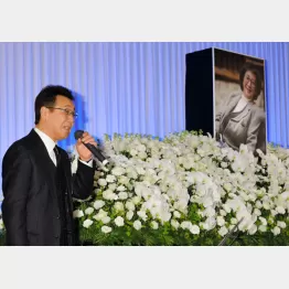 昨年9月に世を去った、作家で作詞家の山口洋子さん(享年77)のお別れ会が28日、ホテルオークラ東京で執り行われた。 会には縁の深かった文壇、芸能界、プロ野球界、銀座のクラブ関係者らが多数出席。伊集院静氏、権藤博氏、平尾昌晃氏(代読・中条きよし)、野坂昭如氏(代読・講談社OB)らが弔辞を捧げた。 また、山口さんが世に送り出した歌手の五木ひろしは、山口さんが作詞、自身が作曲した「渚の女」を献歌。故人を偲んだ。