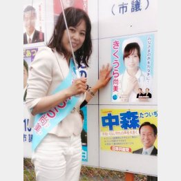 同市西区から出馬した菊浦尚美候補(37)のことで、写真の通り、確かにかなり目を引くポスターだ。もっとも、菊浦候補は病院や介護福祉施設の現場で15年勤めてきた本当の看護師。だから、“コスプレ”とは言えないが、もちろん“インパクト”を狙ったのだろう。