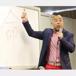 この日も「僕のこじつけなんですけど」と謙遜しつつ「吐くという字は口に『+(プラス)』と『-(マイナス)』。弱音というマイナスを減らせば夢は『叶』う。『叶(かのう)』は『可能』」とホワイトボードを使って熱弁をふるった。