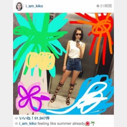 この日の写真は、デニムのホットパンツをはいた水原がエレベーターの中でモデル立ちしたもの。大胆に露出した美脚に黒いレースアップサンダルが映え、コメント欄には<Sexy shoes><あし、なっが!><きこちゃんスタイルカッコいい>など称賛の声が相次いだ。