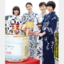 この日は4姉妹を演じる綾瀬はるか(30)、長澤まさみ(28)、夏帆(23)、広瀬すず(16)が劇中で着用した浴衣姿を披露したのだが、ま~、華やかなこと。超成長株から第一線の女優まで、これだけ豪華な顔ぶれが揃うのも珍しい。