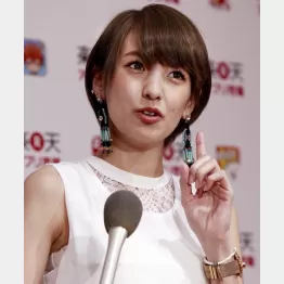 19日、「楽天アプリ市場」の発表会見に出席した南明奈(26)。「よゐこ」濱口優(43)と交際してもう2年になるが、今年5月にバラエティー番組で濱口から「ほんのりプロポーズしたら、やんわり断られた」と暴露された。