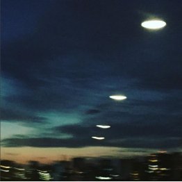 アップされたのは、暮れなずむ空に光る物体が4つ写り込んだ幻想的な写真。本人のコメント欄には「UFO」という単語と宇宙人の顔文字が記されており、まるで「UFOを撮影できた」と言わんばかりの投稿だ。