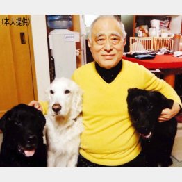僕にとって今、無垢な愛を確認できる存在は2匹の犬たち。左側の黒い犬のシロは先日亡くなってしまったんだけど、今、この世にいない人に会わせてくれるなら、親友の緒形拳や竹脇無我、家族すべてを含めて、一番会いたいのがシロです。ガタ(緒形拳)はそれなりに気を使うだろうし、手探りの会話から始まるでしょう。でも、シロは素直に尻尾を振ってきて飛びついてくる。もうその時点で気持ちが通じます。